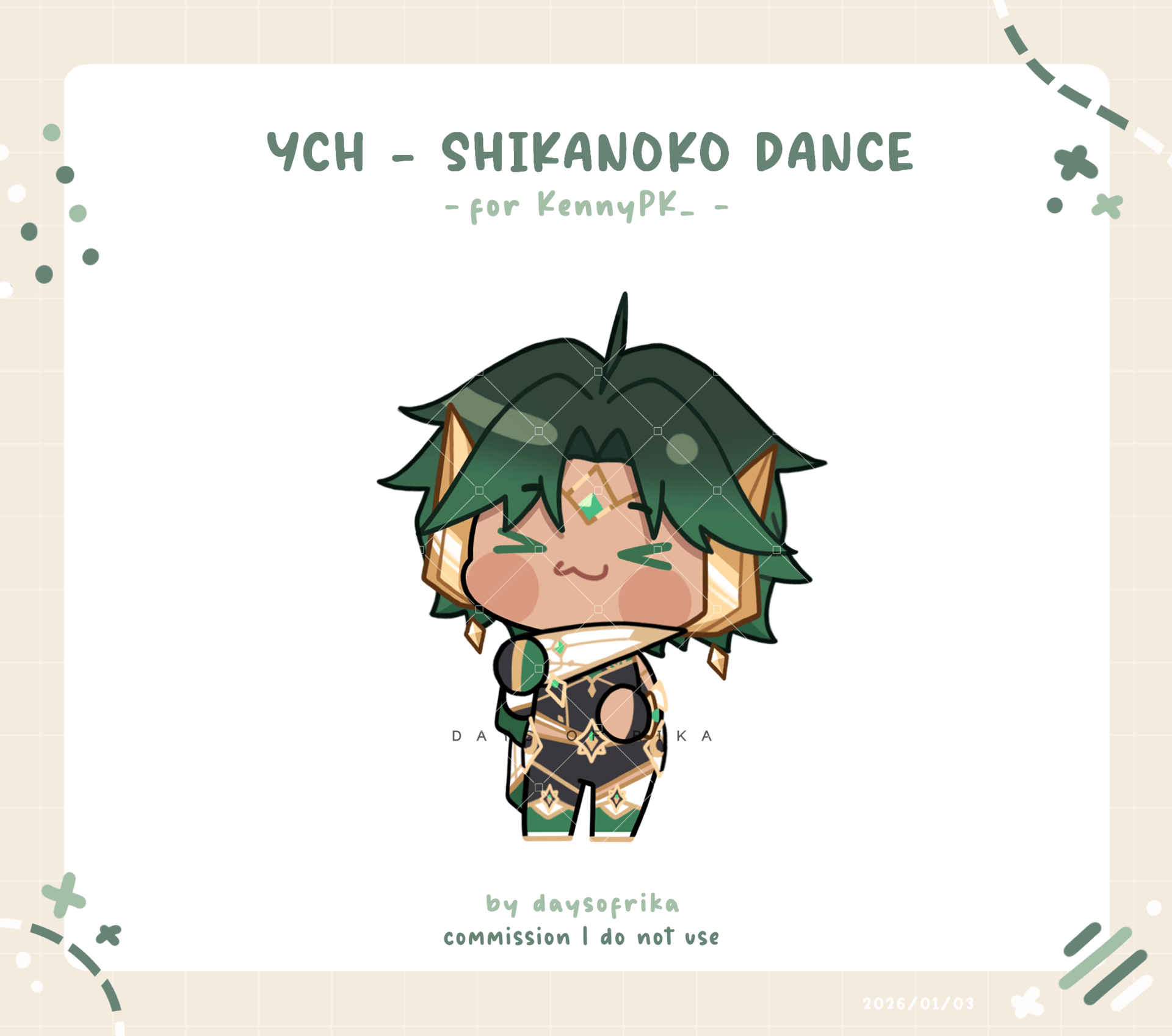 Small doodles will be adjusted to characters' design, or you can request a doodle (free of charge).